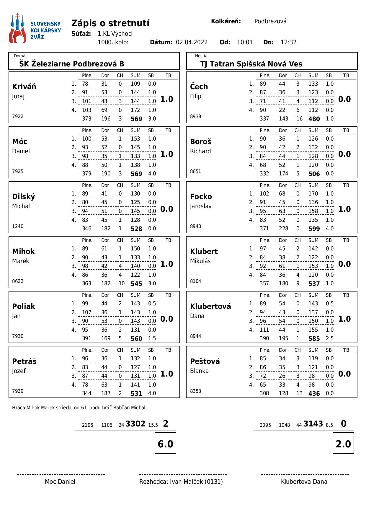 1.KL Východ, 01. kolo Play off, ŠK Železiarne Podbrezová B – TJ Tatran Spišská Nová Ves –