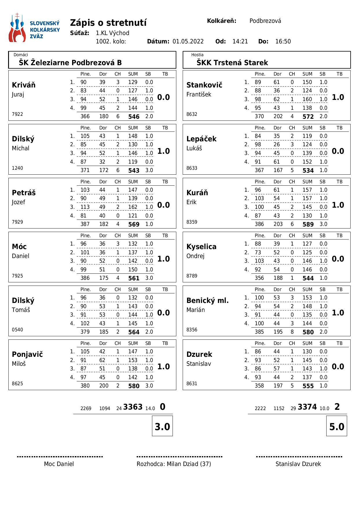 1.KL Východ, 03. kolo Play off, ŠK Železiarne Podbrezová B – ŠKK Trstená Starek