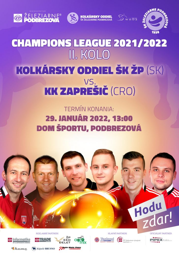 Všetkých Vás srdečne pozývame 29.januára v sobotu o 13:00 hod na kolkáreň v Dome športu v Podbrezovej, kde naše družstvo po tom ako vyradilo v 1.kole KK Proteus Postojna (SLO), privíta v 2.kole Ligy Majstrov chorvátsky KK Zaprešič, ktorý si miestenku v tejto prestížnej súťaži vybojoval víťazstvom na Európskom pohári v Kranji (SLO) a ďalej sa prebojoval v 1.kole cez KK Konstruktor Maribor (SLO). Prídite povzbudiť našich chlapcov a nenechajte si újsť kolkársku svetovú špičku. Podujatie bude prebiehať podla aktuálnych covid-19 opatrení v režime OP do 100 ľudí. Železiar do toho!