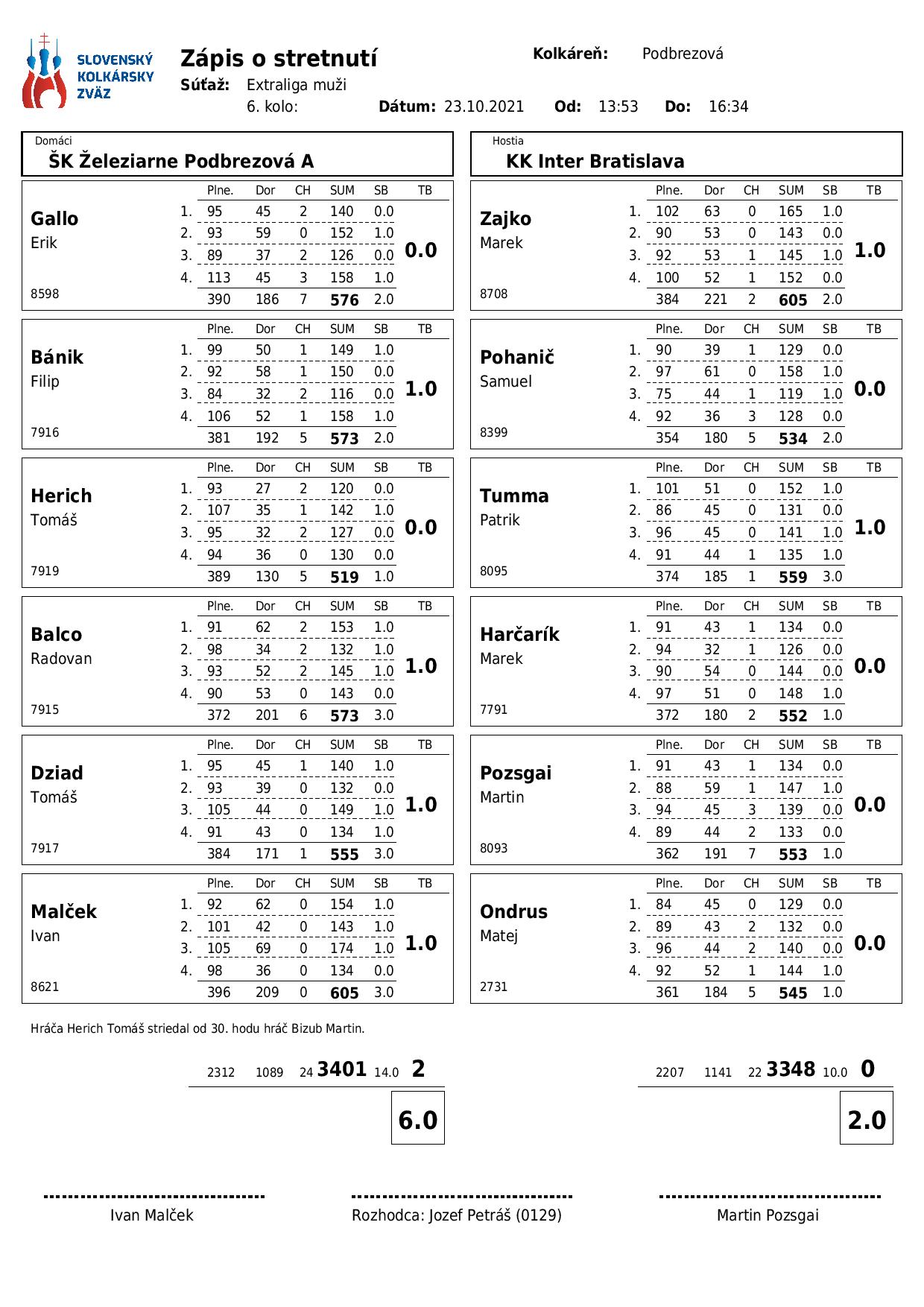 Extraliga muži, ŠK Podbrezová – Inter Bratislava