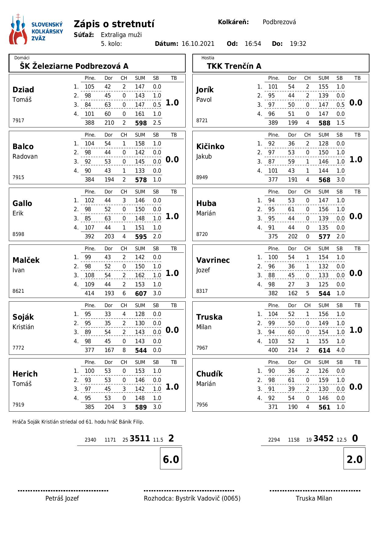 Extraliga muži, ŠK Podbrezová – Trenčín