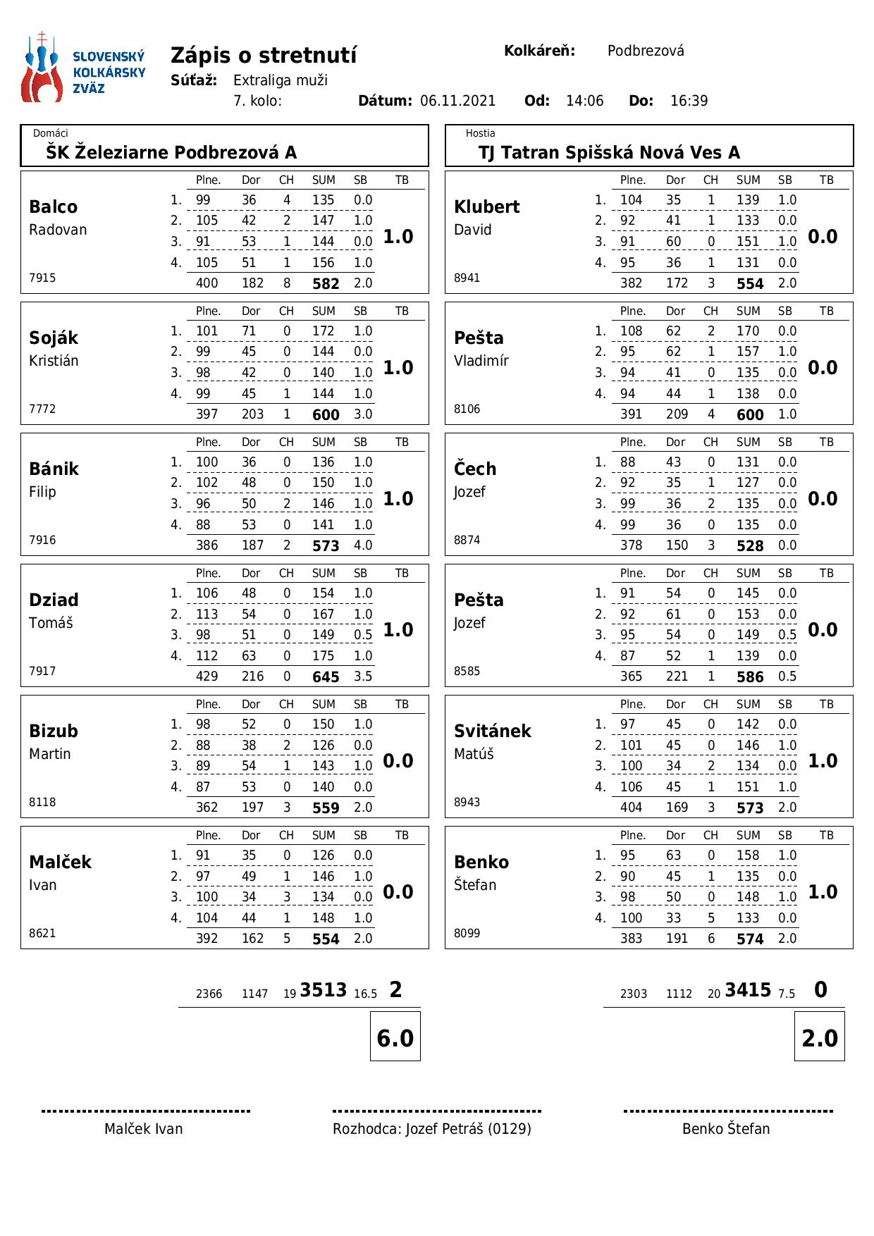 Extraliga muži, ŠK Podbrezová – Sp. Nová Ves