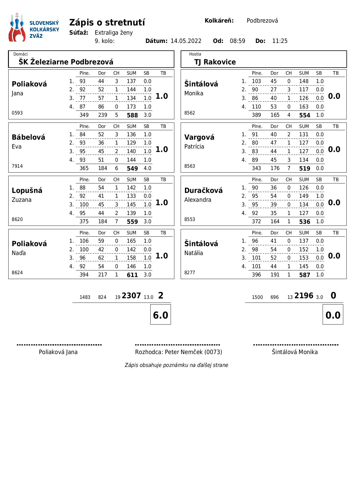 Extraliga ženy, ŠK Podbrezová – Rakovice