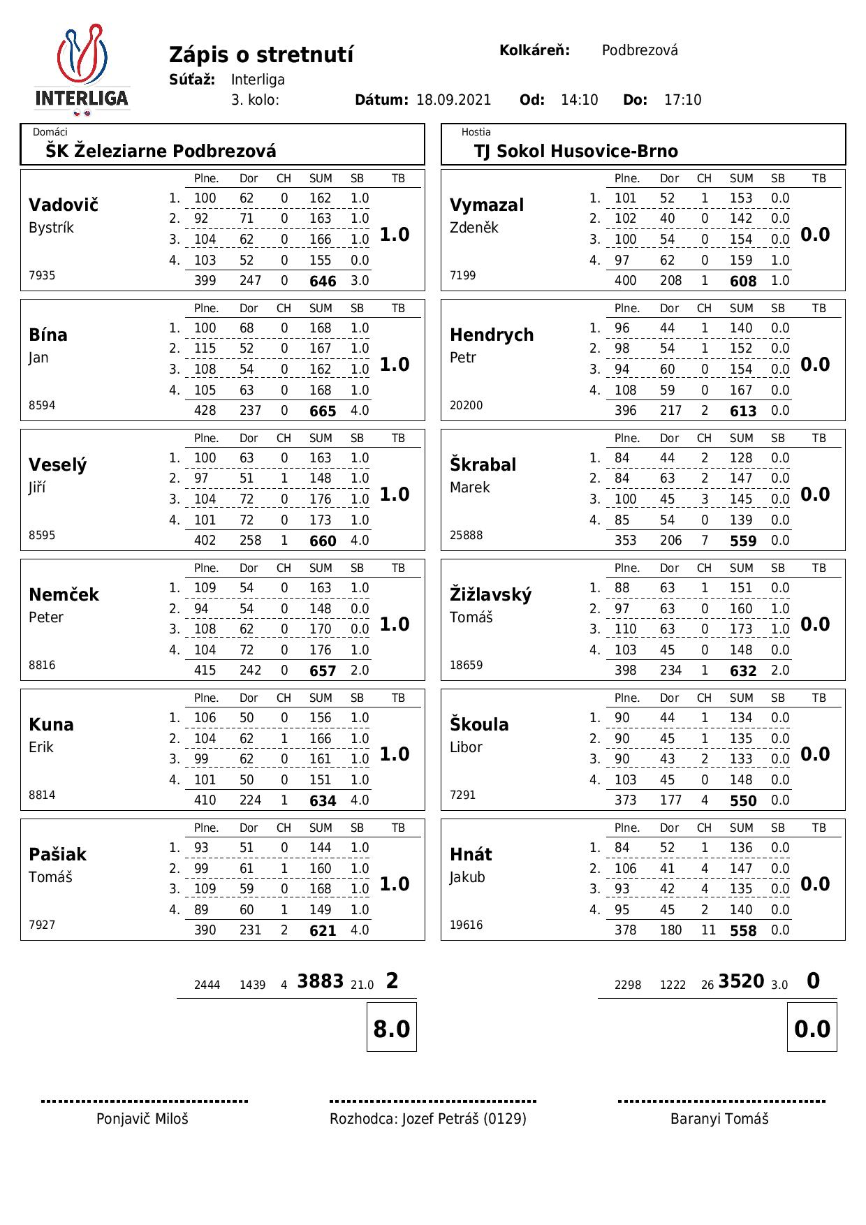 Interliga, ŠK Podbrezová – TJ Sokol Husovice