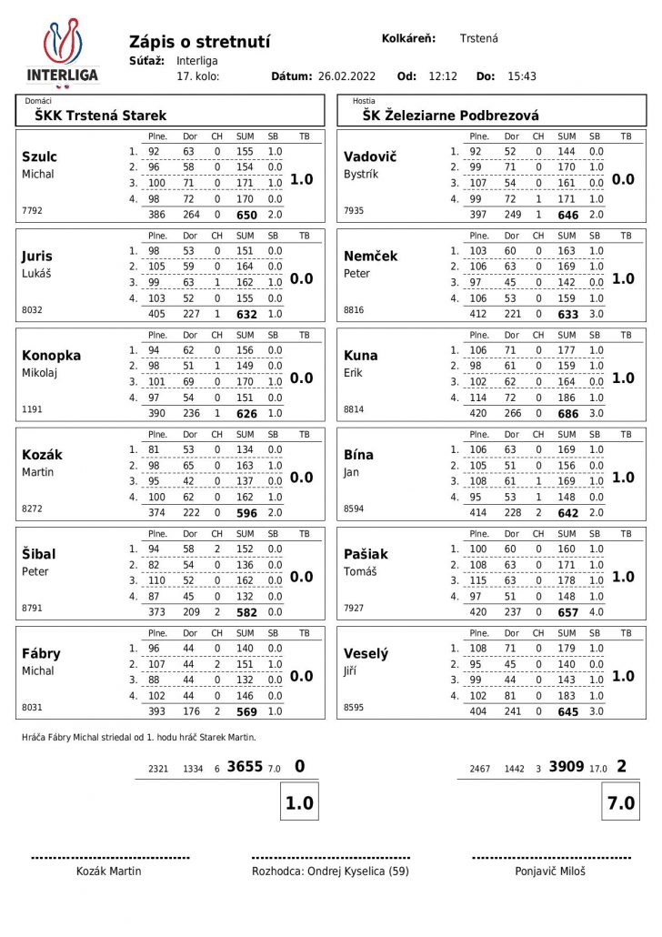 Interliga, ŠKK Trstená Starek – ŠK Podbrezová