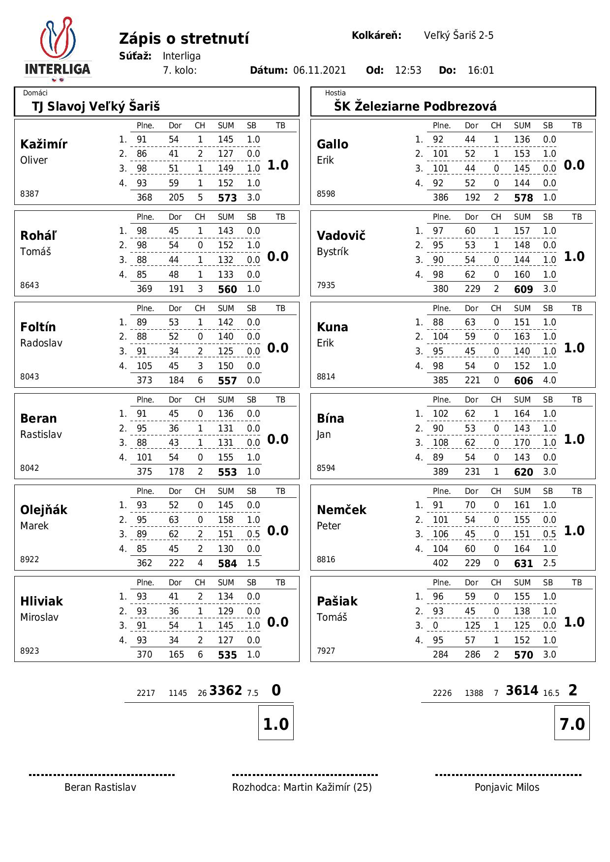 Interliga, Veľký Šariš – ŠK Podbrezová